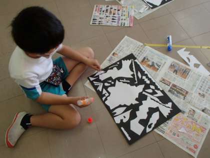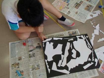 今日の図工では、「ふわふわ」「かくかく」「ギザギザ」等、いろいろなイメージに合わせて切った紙を組み合わせて、一つの作品に仕上げました。