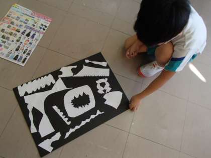 紙の形をよく見て様々な物に見立てるなど、形のおもしろさを感じながら活動していました。