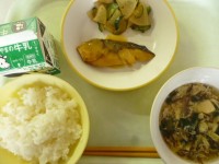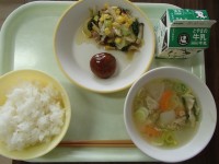今日の給食は、ごはん、牛乳、いわしの土佐煮、もやしのおひたし、豚肉の南蛮煮、バナナです。