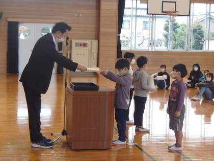 その後は、受賞紹介がありました。1年生の中にも、とってもすてきな賞状をもらったお友達がいました。今度は誰が受賞されるかな?