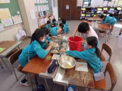 大豆の選別作業が始まりました 総合的な学習の時間(3年生)