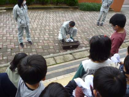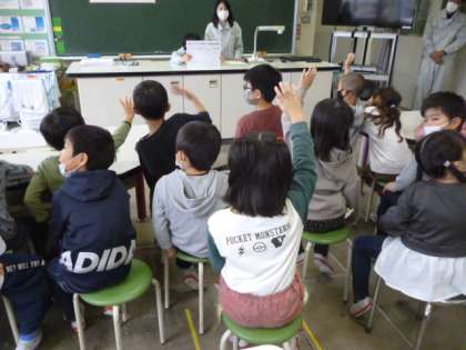 今日は、アール・タチバナから4名の方が来校され、1・2年生の子供たちに「花プロジェクト」を行ってくださいました。