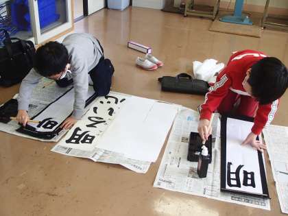 また、今日から書き初めの練習が始まりました。3学期に行われる書き初め大会に向けて集中して練習をしています。