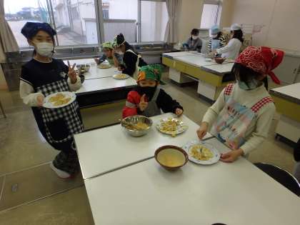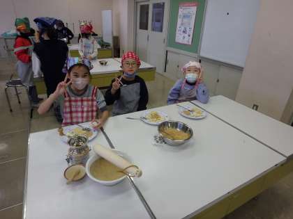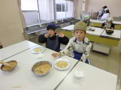 これまで3年生は、大豆の栽培、収穫、選別をしてきました。そして今日は、収穫した大豆を使ってきなこ作りをしました。大豆と砂糖、塩の割合をグループごとに調整しながらオリジナルきなこを作ることができました。食べている子供たちも自然と笑顔になっています。