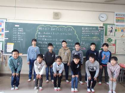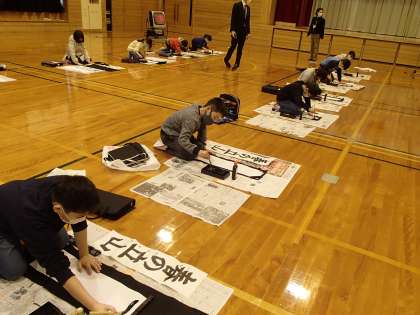 ひっそりしていた教室に、にぎやかな声がもどってきました。体育館で始業式を行ったあとは、校内書き初め大会を行いました。どの子も、家庭でたくさん練習してきた成果が見られ、とても上手に書いていました。結果が楽しみですね。