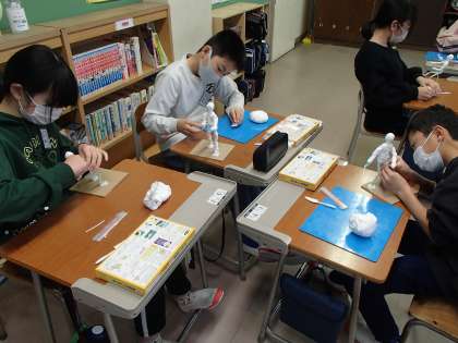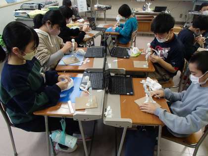 図画工作科の時間に、「未来のわたし」をテーマにして作品を作っています。