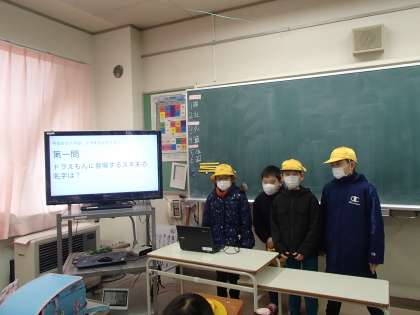 帰りの会に、集会係がクイズを出してくれました。今日は、ドラえもんに関するクイズ2問でした。みんなよく知っている問題だったようです。次回は、難易度が高そうですよ。楽しみですね!