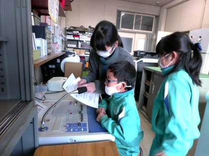 月曜日担当の情報委員も、放送するタイミングを伝えたり、練習をしたりするなど優しく声をかけていました。お昼も座る間隔を取り、放送室で給食を食べています。