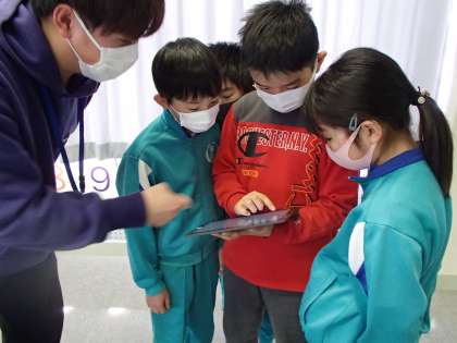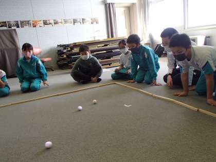 今日は、大学生さんに、iPadを使って、プログラミングの仕方を教えていただきました。プログラムをはめこんだゴルフボールを、端末を使って動かしました。なかなか思うようには動きませんでしたが、少しのずれを調整しながらがんばりました。