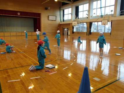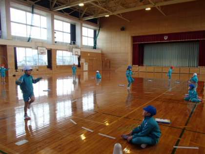 体育の学習で短縄跳びに取り組んでいます。前回しの両足跳び、かけ足跳び、後ろ回しの両足跳びの記録にチャレンジしたり、あや跳び、交差跳び等の難しい跳び方の練習に挑戦したりしました。