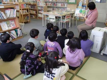 国語の時間には、図書室で読み聞かせをしていただきました。