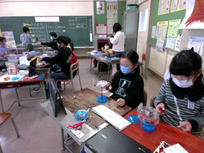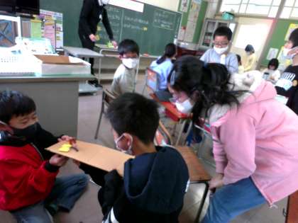 今日は、理科で学習した磁石の仕組みを使って、おもちゃを作りました。