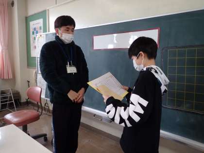 給食週間の前後に取り組んだ「食べキリン(残食ゼロ)ビンゴ」の結果発表を行いました。どの学年も残さず食べた日が多くあり、ビンゴを達成していたので表彰状を贈りました。これからも給食を、残さずおいしくいただきたいと思います。