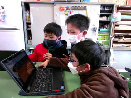 今日は、4、5、6年生がスキー学習のため、3年生が委員会の仕事をしました。