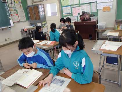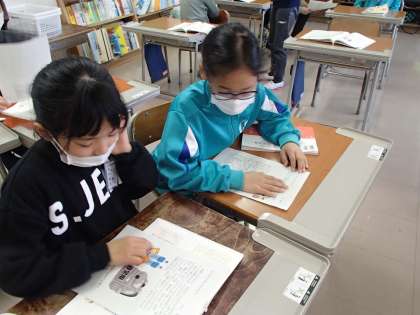 今日の国語は、自分が書いた文章をペアの友達とお互いに読み合い、分かったことや感想、質問など伝え合いました。