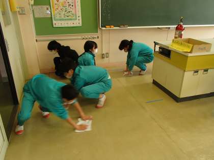 校舎への感謝の気持ちを込めて、一生懸命清掃しました。