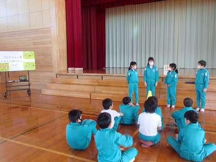 今日のげんきタイムに、クラス集会をしました。それぞれのチームが、活動を計画しました。