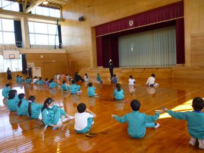 今日は、今年度最後の全校運動でした。一年間、走・跳・投の運動や鉄棒・竹馬・倒立、そして縄跳び運動に取り組んできました。