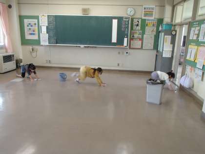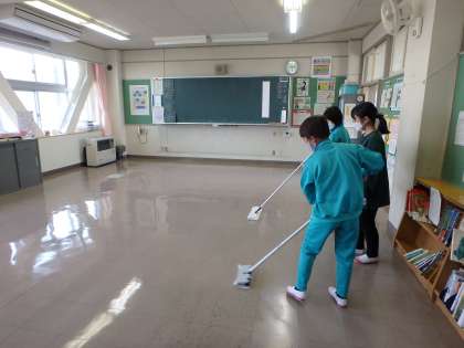 今日の5限は、ワックスがけのため、みんなで教室の水拭き清掃を行いました。1年間お世話になった教室に、ありがとうの気持ちで、丁寧に雑巾がけをしました。清掃が終わると、教室は気持ちがよいくらいピカピカになりました。残り9日間!みんなでがんばりましょうね。