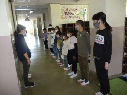 今日は6年生と共にする最後の縦割り清掃でした。いつもと変わらず自分の仕事を懸命に行う寒江っ子ですが、反省会では6年生へのありがとうと気持ちを込めて挨拶しました。