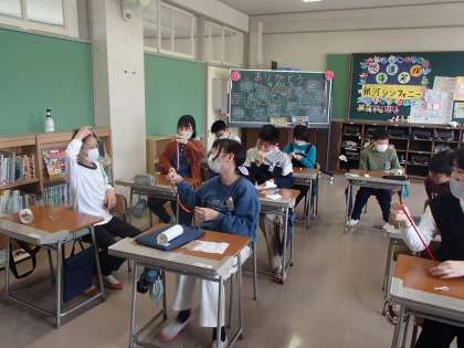 養護教諭の先生から、6年間の身長の伸びと同じ長さのリボンを手紙と一緒にいただきました。「こんなに伸びていたのか」と驚く子供たち。
