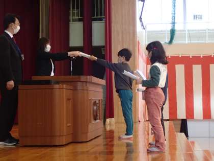 今日は今年度の最終日、修了式を行いました。各学年の代表に修了証が渡されました。寒江っ子はこの一年いろいろなことを体験し、よくがんばりました。4月からも元気に明るい寒江っ子でがんばりましょう。保護者の皆様、地域の皆様、この一年のご協力・ご支援どうもありがとうございました。