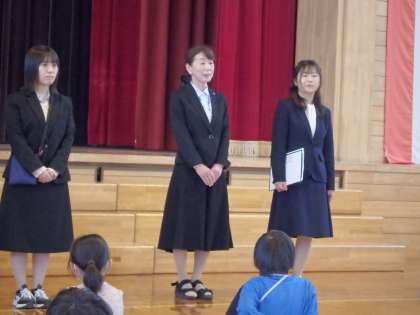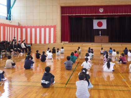 始業式では、校長先生のお話の後、教職員の紹介、担任の先生の発表がありました。子供たちは新たな学年のスタートに、胸踊らせている様子でした。