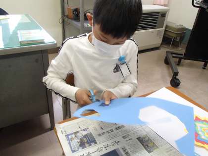 画用紙を思いのままに切り、どんどんのりで重ねていきます。