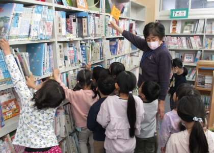 今日は図書室オリエンテーションがありました。図書室の先生に「図書室ツアー」をしてもらい、本の場所がだいたい分かった子供たちは、最後に自分たちの好きな本を2冊借りました。休み時間には、早速借りた本を読んで楽しんでいました。