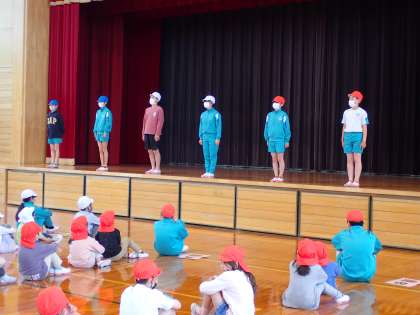 結団式を行いました。団役員の自己紹介・決意表明の後、団旗渡しがありました。1年生から5年生は、リーダーの思いを知り、運動会に向けて力を合わせていこうという気持ちを高めていました。
