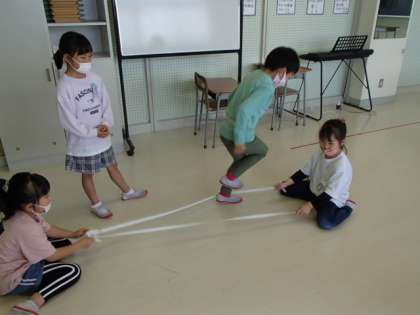 ステップが少し難しかったですが、子供たちは夢中になって練習し、最後には音楽に合わせて踊ることができていました。お家でもぜひ見てあげてください。