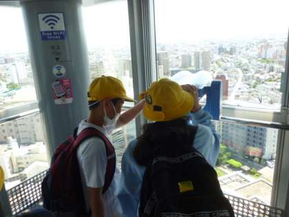 富山市役所展望塔や日枝神社、富岩運河環水公園等、班ごとに目的地を決め、班別行動を行いました。
