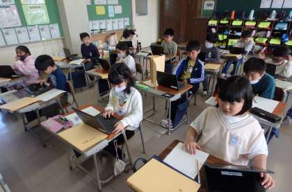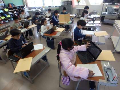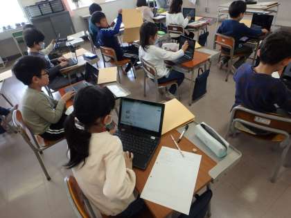 総合的な学習の時間には、大豆について学習をしています。毎回自分でテーマを考え、本やクロムブックを使って調べ学習をしています。