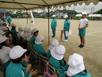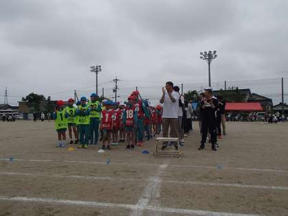 最後に親子対決リレーを行いました。出場してくださったお父さんたち、どうもありがとうございました。その後閉会式を行いました。運動会を終え、解団式を行いました。共に戦った仲間と健闘をたたえ合いました。