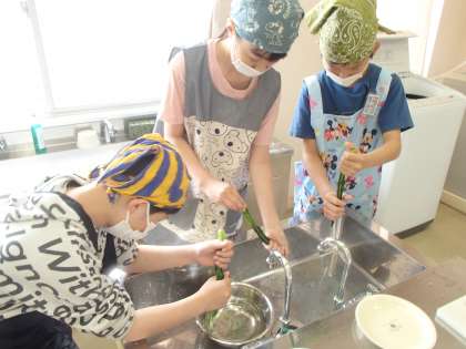 初めて野菜をゆでたり、包丁をにぎったりする子もいました。