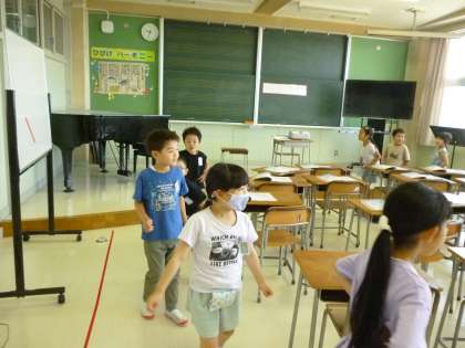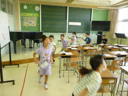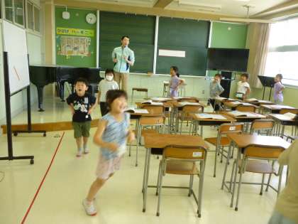 音楽科でしろくまのジェンカの曲に合わせて、ダンスをしました。リズムよく前や後ろにジャンプ!みんな笑顔で踊っていました。