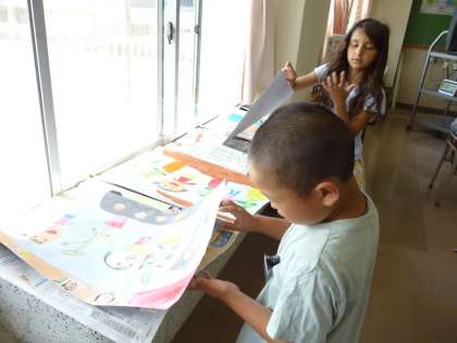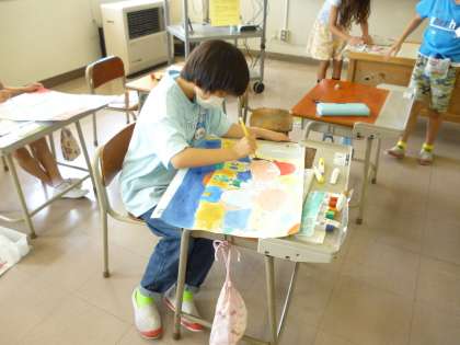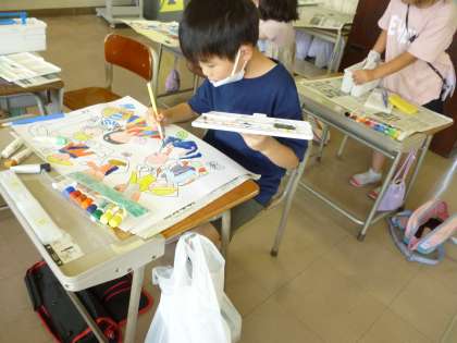 図画工作科では、「わくわくどきどきしたとき」のことを思い出して絵を描きました。どの子供も、画面いっぱいに表情豊かな絵を描いていました。