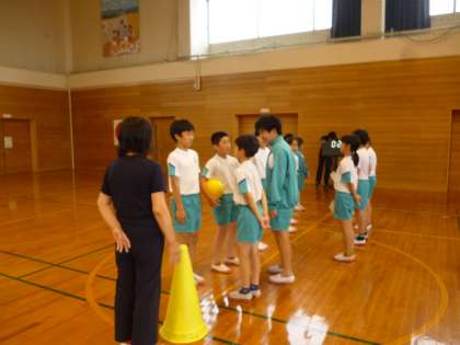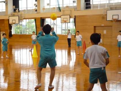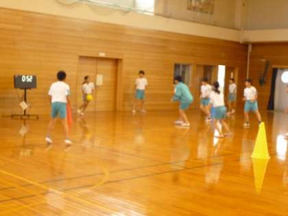 6月8日(木)のスポーツクラブの様子です。ドッジボールの対戦をしています。