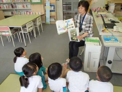 今日は、図書室で司書の先生にブックトークをしていただきました。テーマは「たんぽぽ」です。国語の教科書で学習した「たんぽぽのちえ」のことを思い出しながら、興味津々で聞いていました。