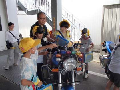 また、外では大きなバイクにも乗せてくださり、子供たちはとても喜んでいました。