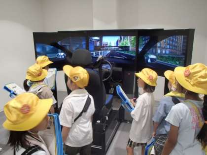 最初に訪れたのは「呉羽自動車学校」です。自動車学校の方が施設の中を案内しながら、それぞれの部屋でどんな勉強をするのかを丁寧に教えてくださいました。