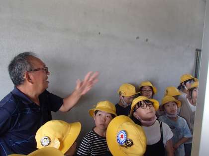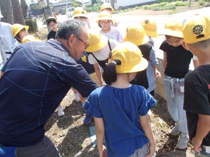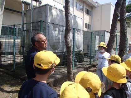 水の勉強で、用務員さんに給水タンクを見せていただきました。子供たちは、想像以上に大きくて驚いていました。これからも水を大切にしていきましょう。