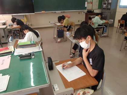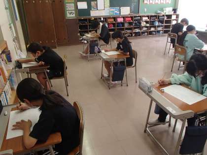 家庭学習強化週間似合わせて、まとめのテストをしています。子供たちはテストに向けて、自分で課題を見付け、家庭学習等に取り組んでいます。