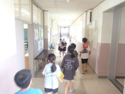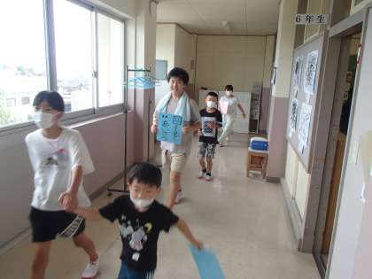 計画委員会では、朝の時間に教室や職員室を回ってあいさつを呼びかけています。計画委員でなくても、一緒に回ってあいさつをしてくれる子もいて、とても明るい朝になっています。