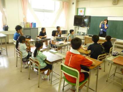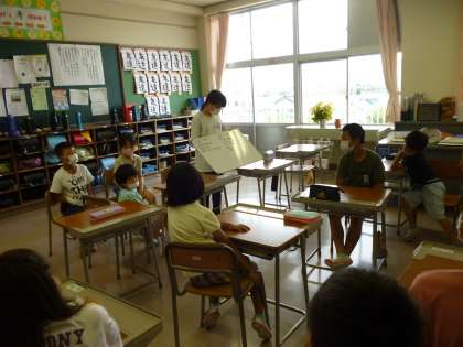 縦割り班に分かれて道徳の授業を行いました。挨拶について考え、意見を出し合いました。