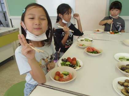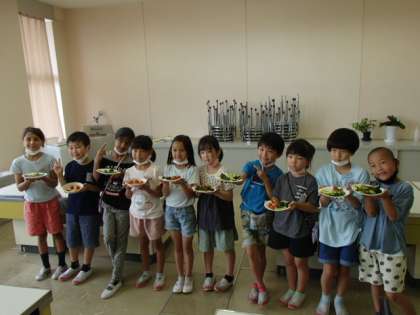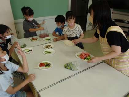 野菜が苦手な子や初めて食べるメニューがある子もいましたが、「おいしい!」とおかわりをして食べていました。