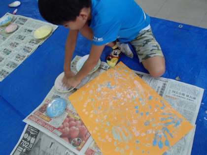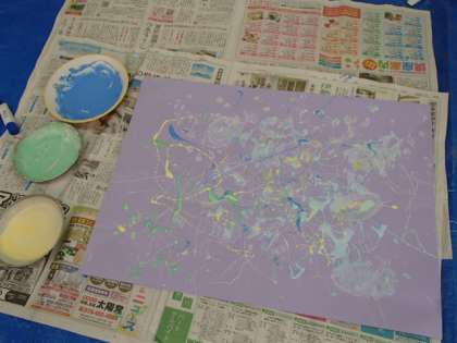 今日は、2学期初めての図工がありました。液体粘土に絵の具を混ぜた「とろとろ絵の具」を作り、その感触を楽しんでいました。