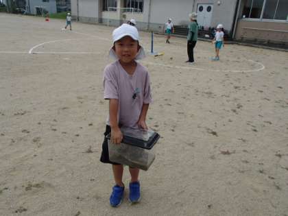 生活科「生きものと友だち」の学習で、自分が育てたい生きものを捕まえました。
