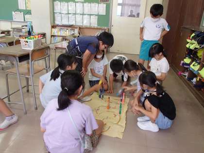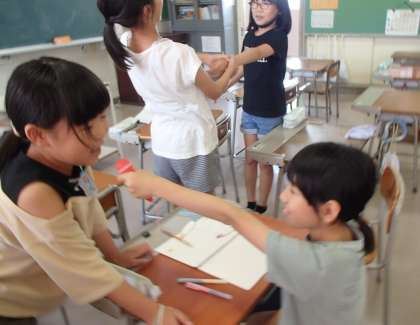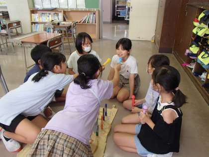休み時間にみんなで作ったすごろくで遊んだり、絵を描いたりして過ごしていました。すごろくは、歌を歌うマスや上体起こしをするマスがありました。だれかが、そのマスに止まったら全員で一緒に歌ったり、上体起こしをしたりしていたので、とても盛り上がっていました。