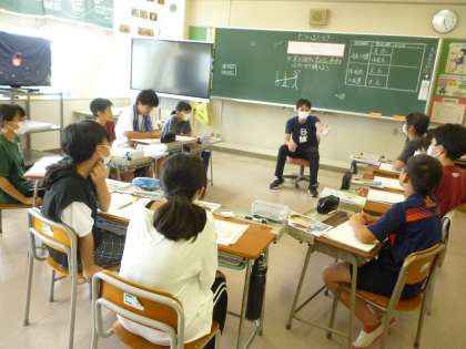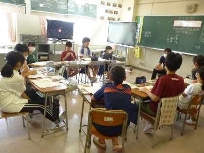理科では、「てこのはたらき」について学習しています。今日は、軽い力で重い物を持ち上げるにはどうすればよいか、みんなで話し合いました。「支点、作用点、力点」の言葉を使って、気付いたことを説明することができました。